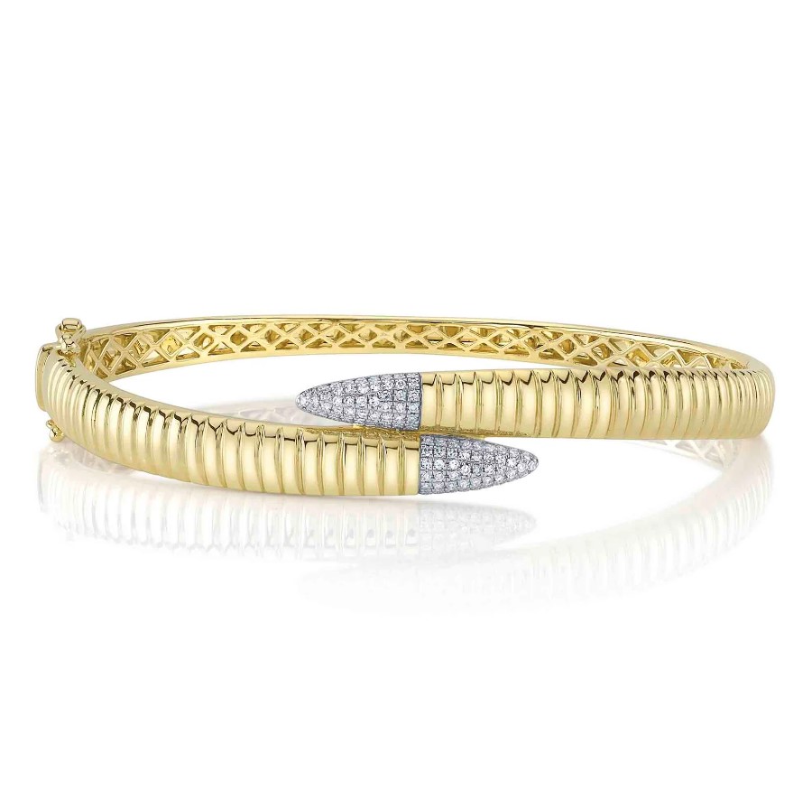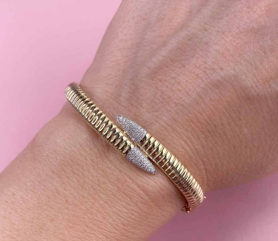 14K Yellow Gold Cross Over Diamond Bangle Bracelet Moore Jewelers Laredo, TX